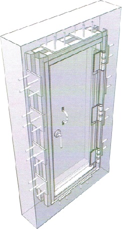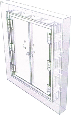 - • ชั้นคุณภาพกลาง (Mid-range door) : สำหรับประตูเหล็กที่ต้าน แรงดันของระเบิดเทียบเท่าได้อย่างน้อยระหว่าง 21 ถึง 172 kPa (3 psi ถึง 25 psi)
