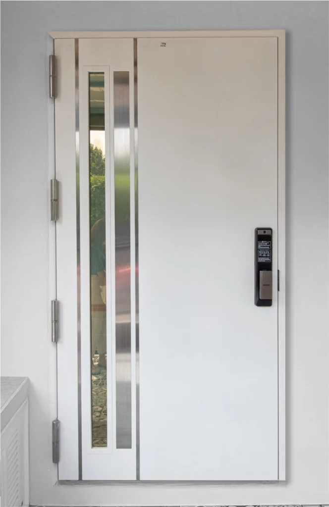 Beautiful doors and standard steel doors are available in various styles, including powder-coated doors, steel doors overlaid with PVC or laminate sheets, and laser-cut patterned doors — all designed under the concept of beauty, safety, strength, durability, and excellent anti-theft protection.