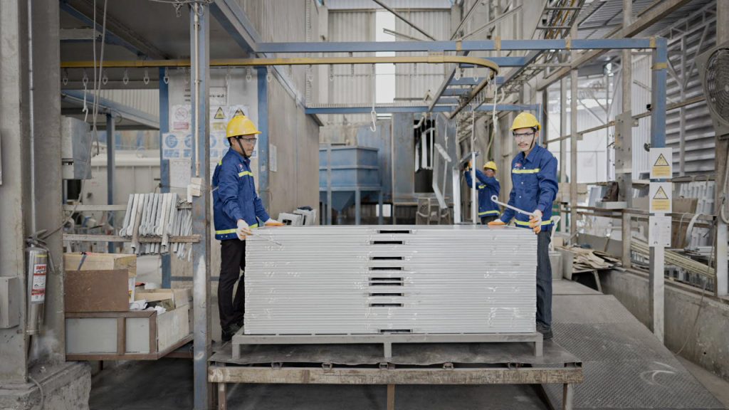 Our fire-rated doors are made of electro-galvanized steel. The door leaf and frame thickness is 1.6 mm. Inside the door leaf is filled with ROCKWOOL insulation. The surface is factory-finished with powder coating. Available in single solid leaf, double solid leaf, single leaf with glass panel, and double leaf with glass panel. Certified by Chulalongkorn University (BS476) for fire resistance, and tested to UL 10B and 10C fire standards from the United States.