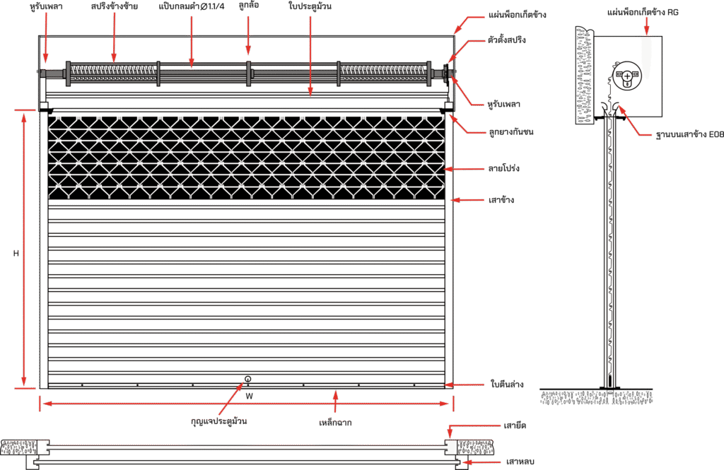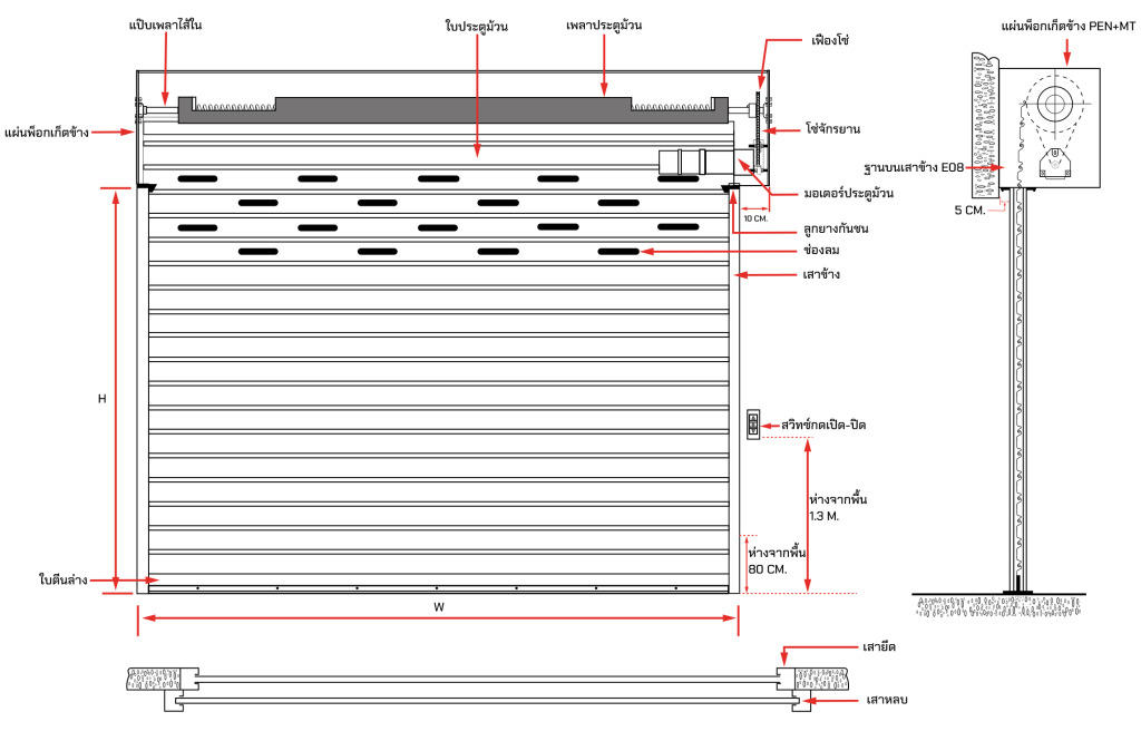 • 3.ประตูม้วนทนไฟ จะมีการติดตั้งสวิทซ์เพื่อเปิดหรือปิด ได้ด้วย